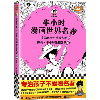 内容简介 : 孩子不爱读名著,原因有三:字太多;情节太复杂;不知道作者想要表达啥。陈磊(笔名:混子哥)领衔的半小时漫画团队,通过诙谐语言和手绘漫画,不仅让砖头一样厚的名著瞬间变得轻松有趣,还能给让孩子讲透名著背后的历史、社会、思想、人性: 《神曲》实际上是一部欧洲版的西天取经; 《格列佛游记》本质上是一部对英国现实社会的辛辣讽刺剧; 《普希金诗选》其实是普希金二十五年朋友圈大集锦! 翻开本书,半小时了解8本世界名著的精华,像追剧一样追完《荷马史诗》《神曲》《堂吉诃德》《哈姆雷特》《鲁滨孙漂流记》《格列佛游记》《悲惨世界》《普希金诗选》